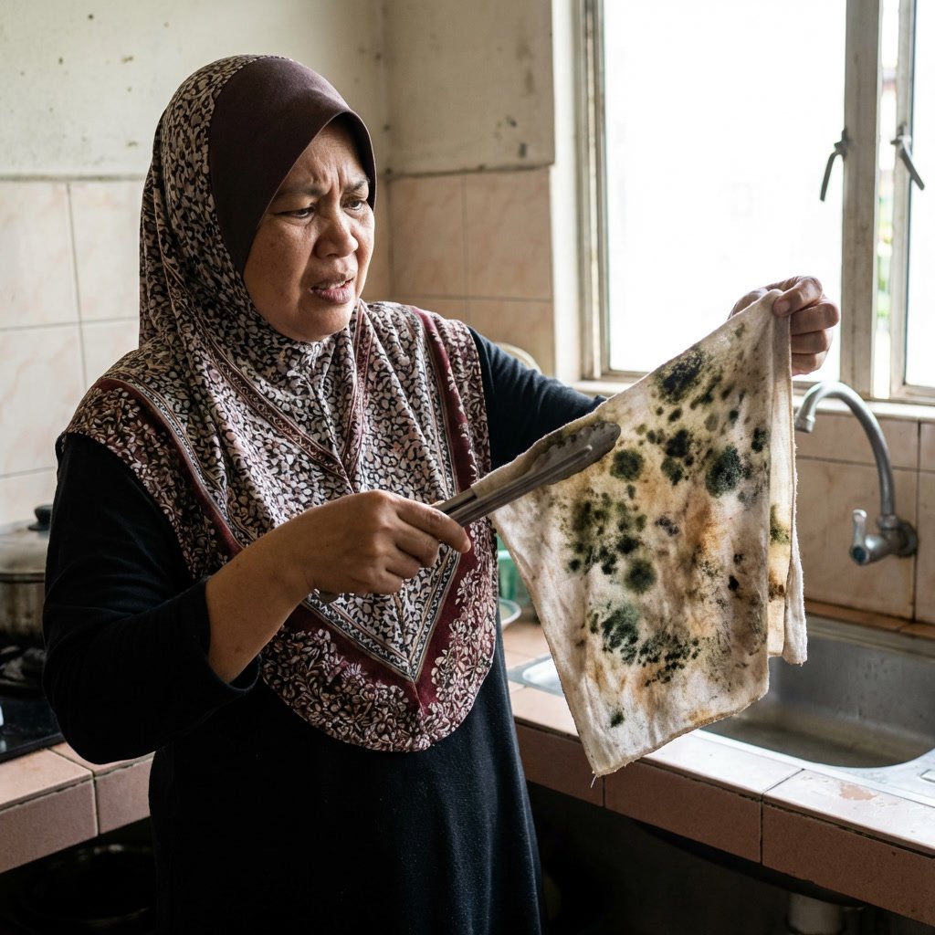 ❌ Kain buruk di singki sentiasa basah, berbau kepam, dan berlendir?
